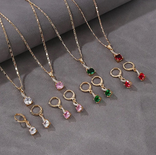 Ladies Luxury 18K Gold Laminated Fine Jewelry Set – Trendy CZ Cubic Zirconia Earrings & Necklace for Elegant Party Wear & Gifts