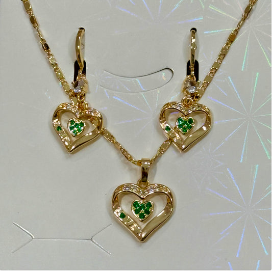 Ladies Luxury 18K Gold Plated Fine Jewelry Set - Heart Zircon Stone Earrings and Necklace Set - Anniversary Birthday Weddings Engagements Love Gift