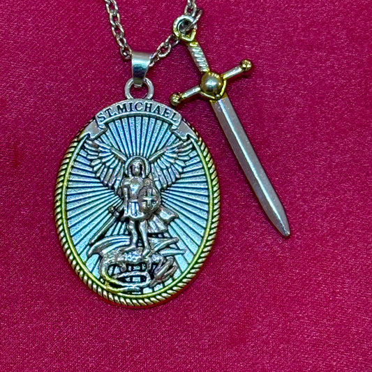 St. Michael Protection Shield Necklace – Guardian Angel Faith Pendant with Sword
